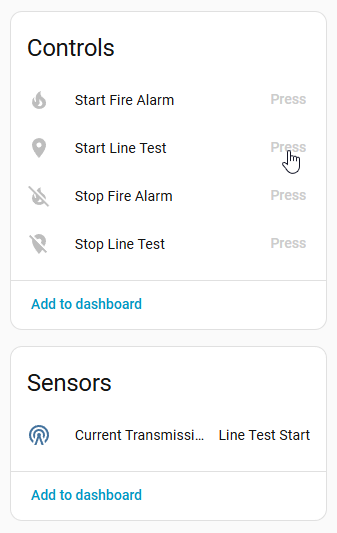 - 4 Button Entities - Start/Stop line test, Start/Stop fire alarm